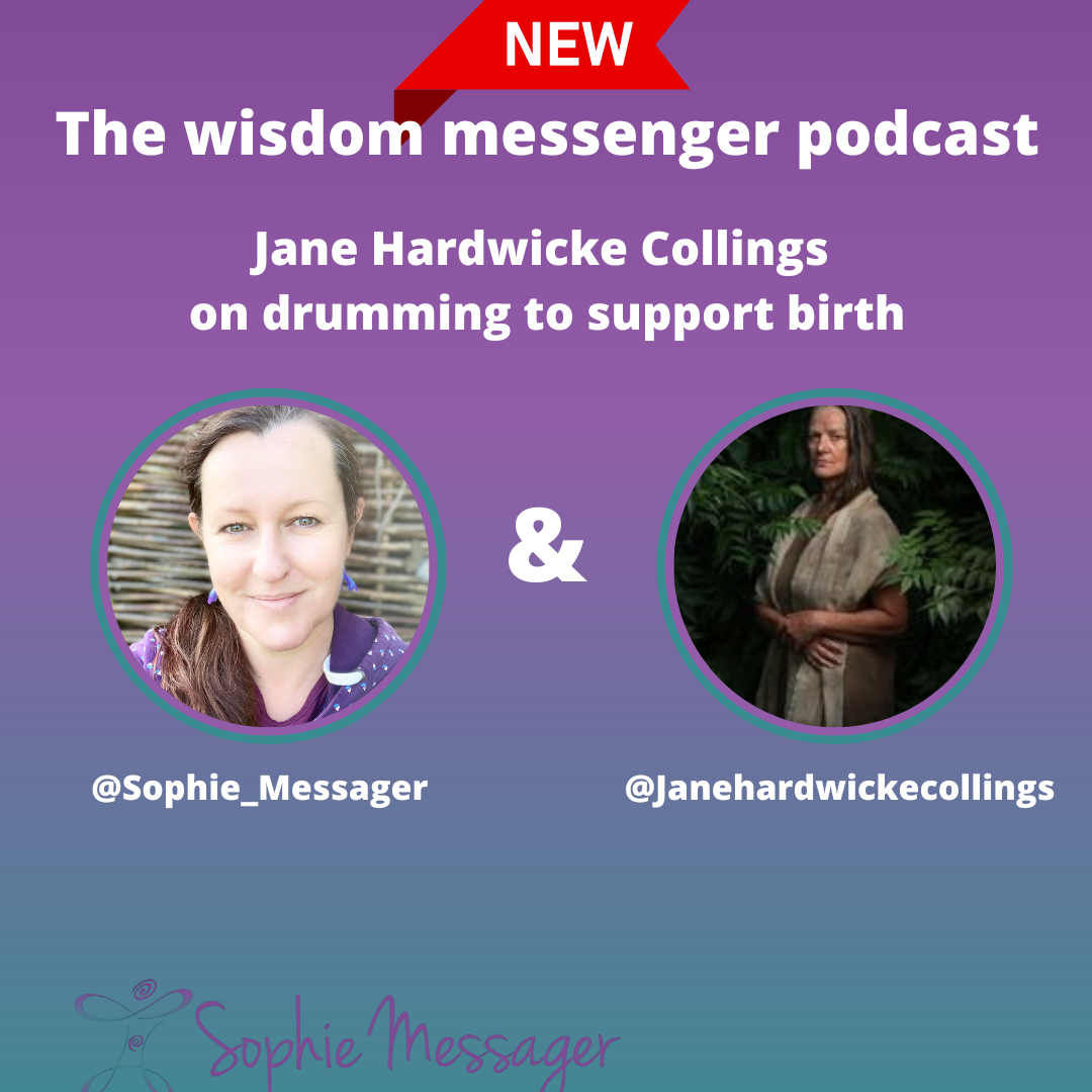 In the first episode of the Wisdom Messenger Podcast, I interview Jane Hardwicke Collings about drumming to support pregnancy and birth. Jane is a grandmother, former homebirth midwife for 30 years, a teacher, writer and menstrual educator and the founder of the school of Shamanic WomanCraft. We discuss how drumming can support the birth journey.